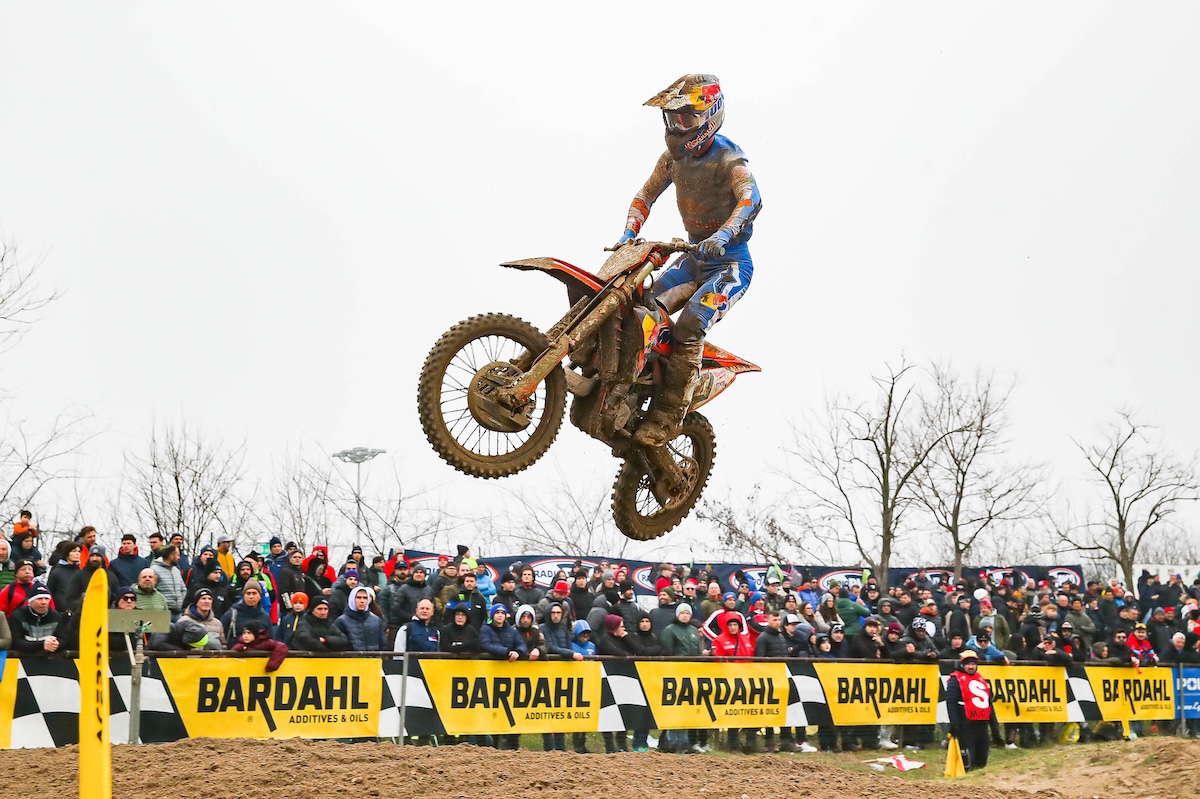 In MX2, a double win of the day and overall victory for Simon Langenfelder (Red Bull KTM Factory Racing), who always started very strong and maintained a pace unmatchable for his opponents, led by Scott Smulders (Husqvarna) and Jekabs Kubulins (Yamaha) in race 1 and Valerio Lata (Honda HRC) and Cas Valk (TM Moto CRD) in race 2, the latter thanks to excellent results also climbed to second place on the podium of the day.